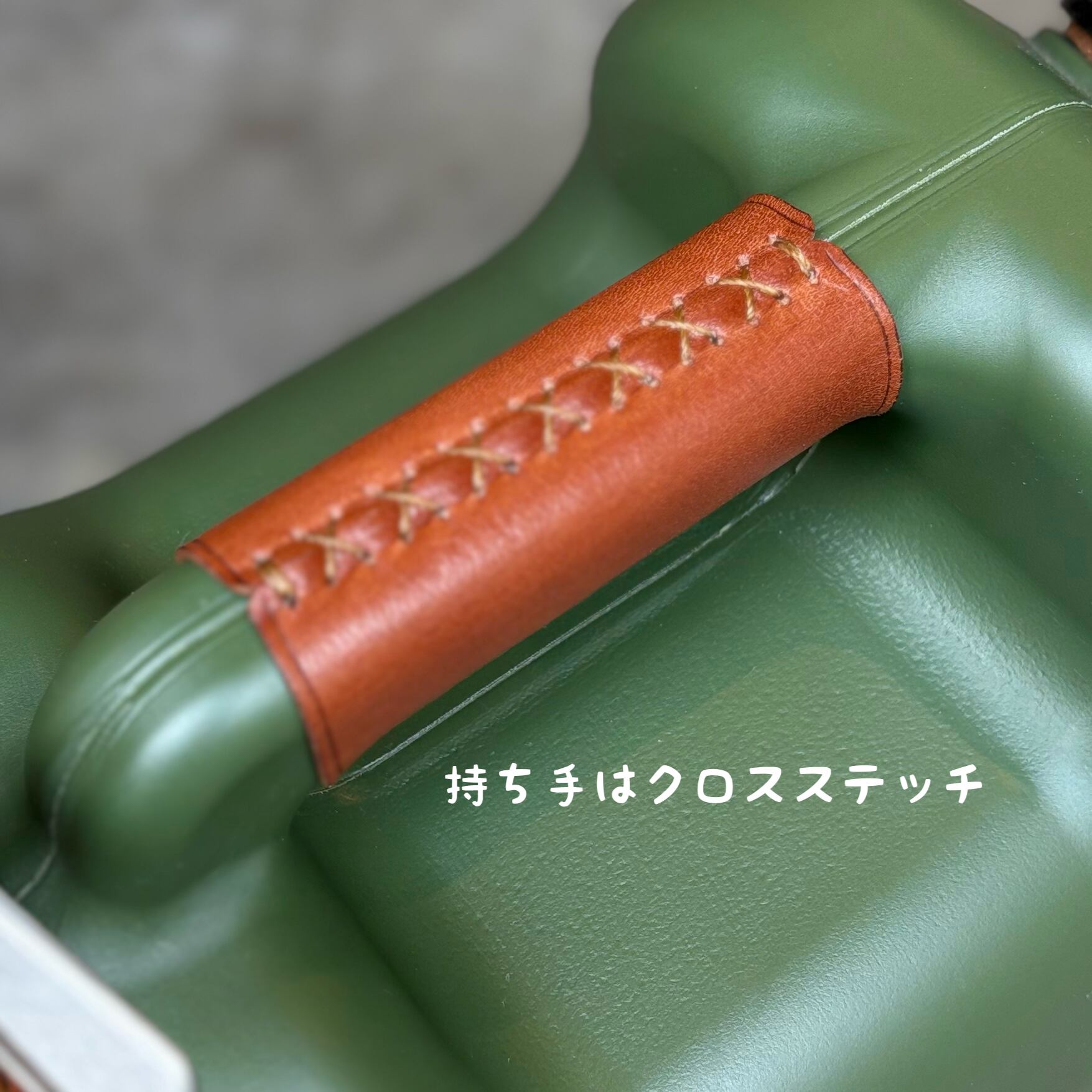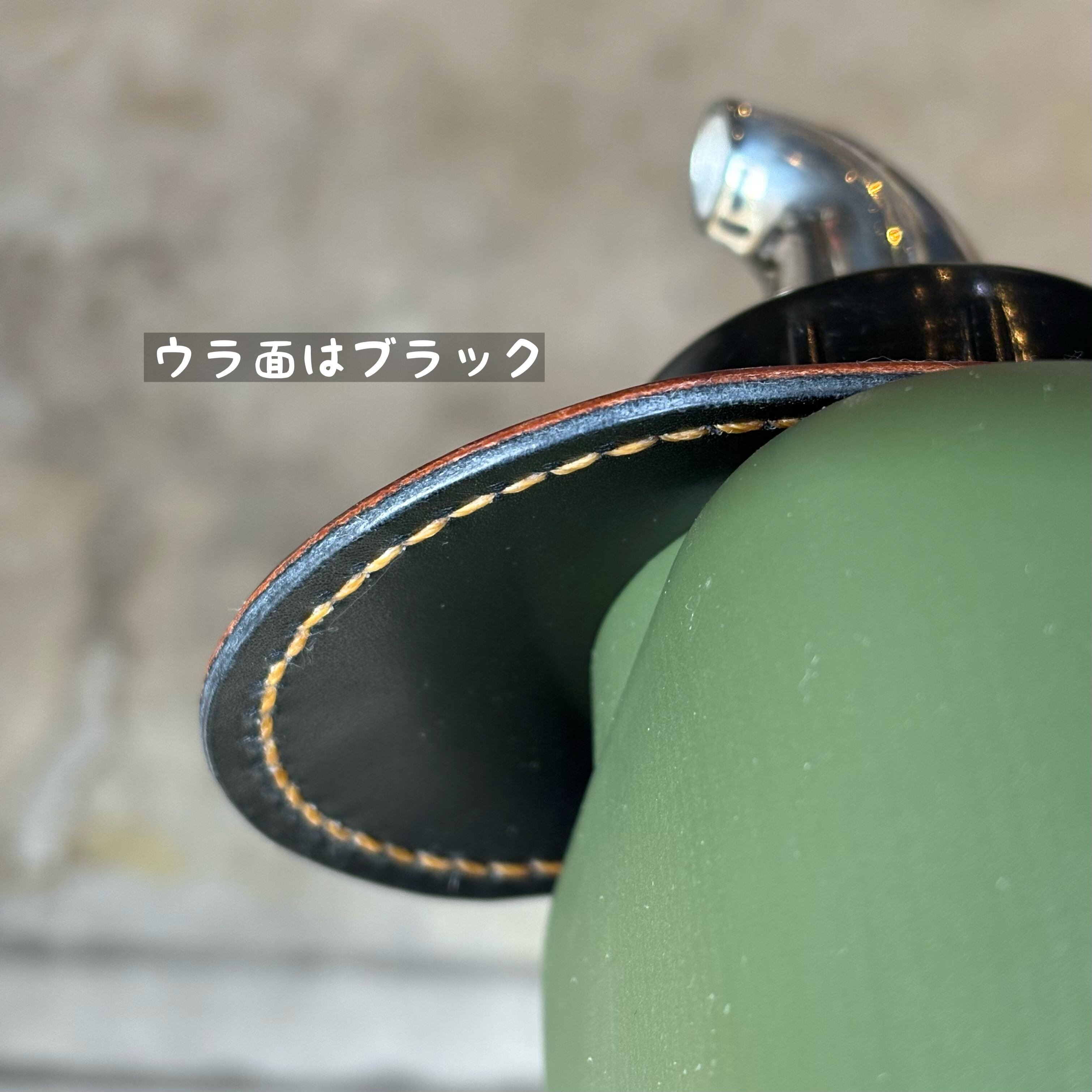 ステッチは手縫いで、サーバー部は裏表でニ種類の革を貼り合わせてツートンカラーになっています。
