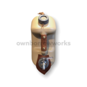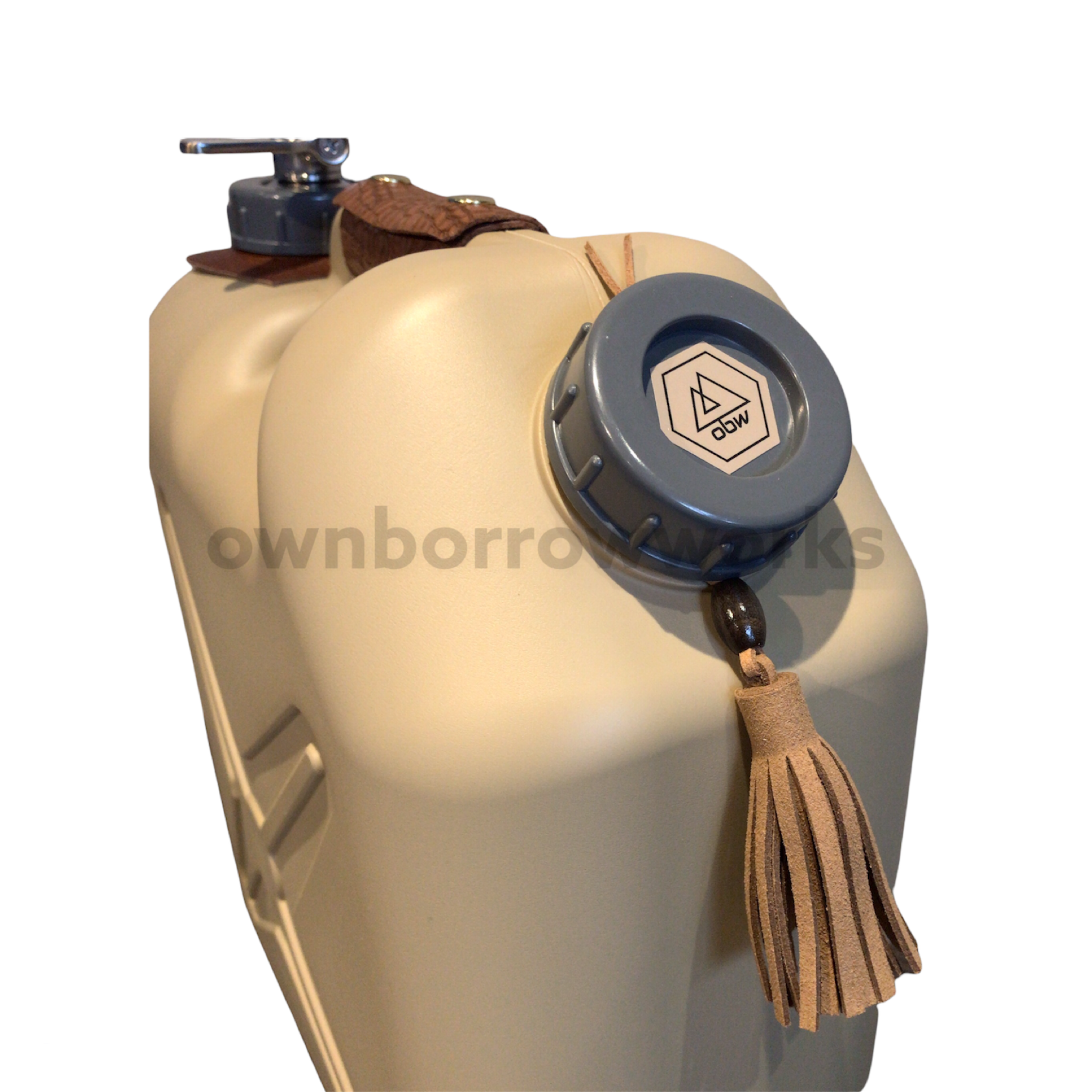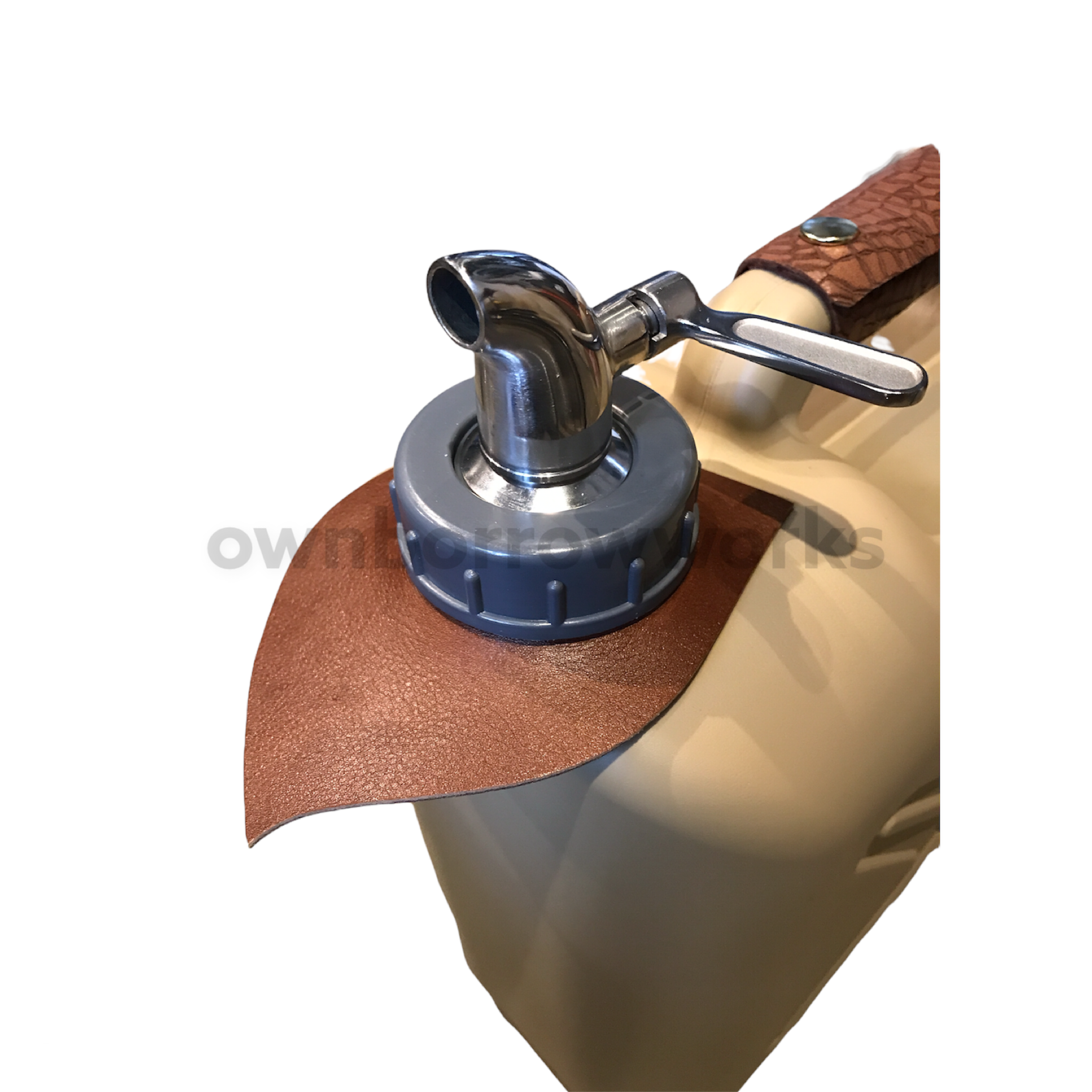 両手が使えるようサーバーコックを取り付け、アクセントとしてレザーやタッセルで飾り付けしてあるので、他とは一味違ったギアとしてキャンプサイトで映えると思います。