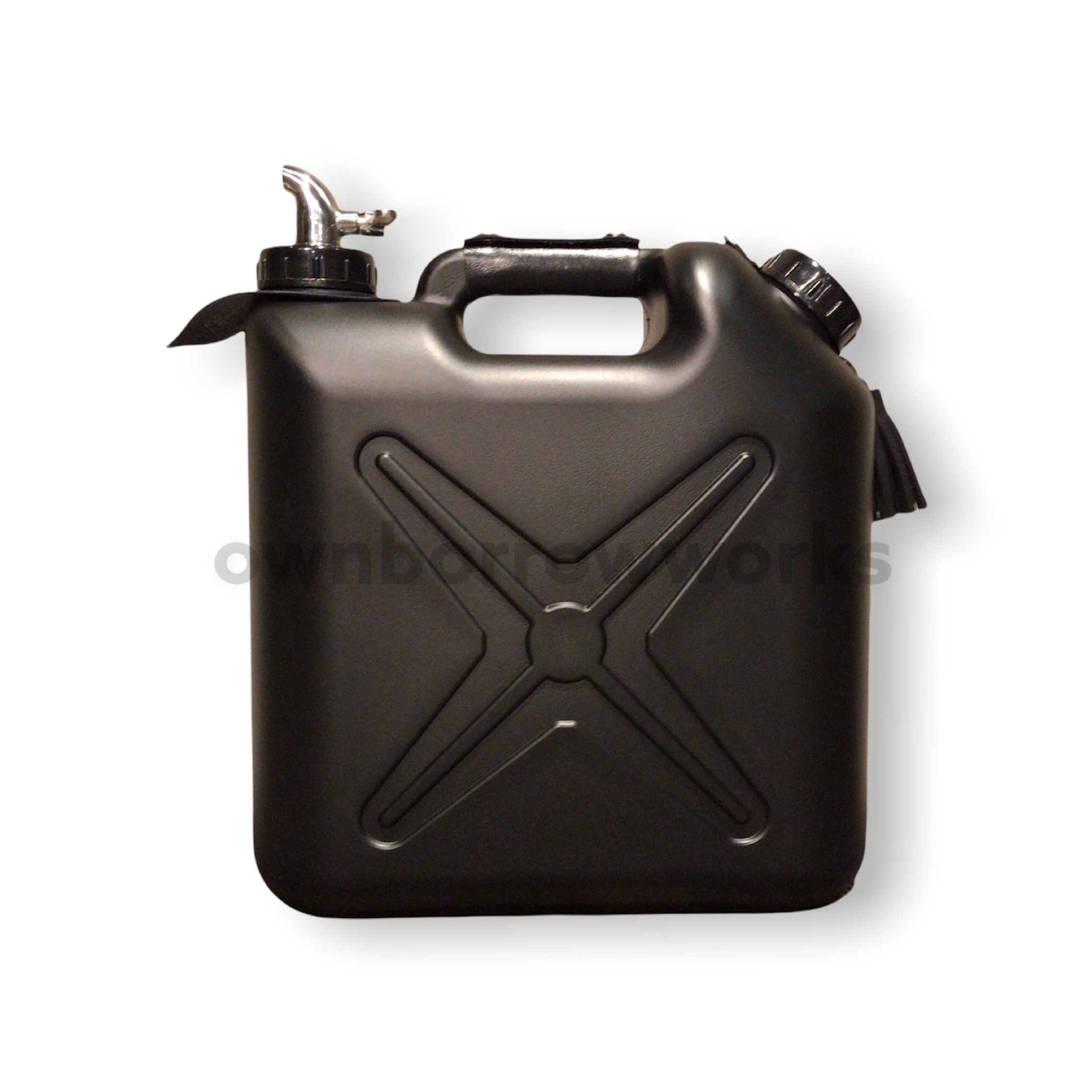 両手が使えるようサーバーコックを取り付け、アクセントとしてレザーやタッセルで飾り付けしてあるので、他とは一味違ったギアとしてキャンプサイトで映えると思います。