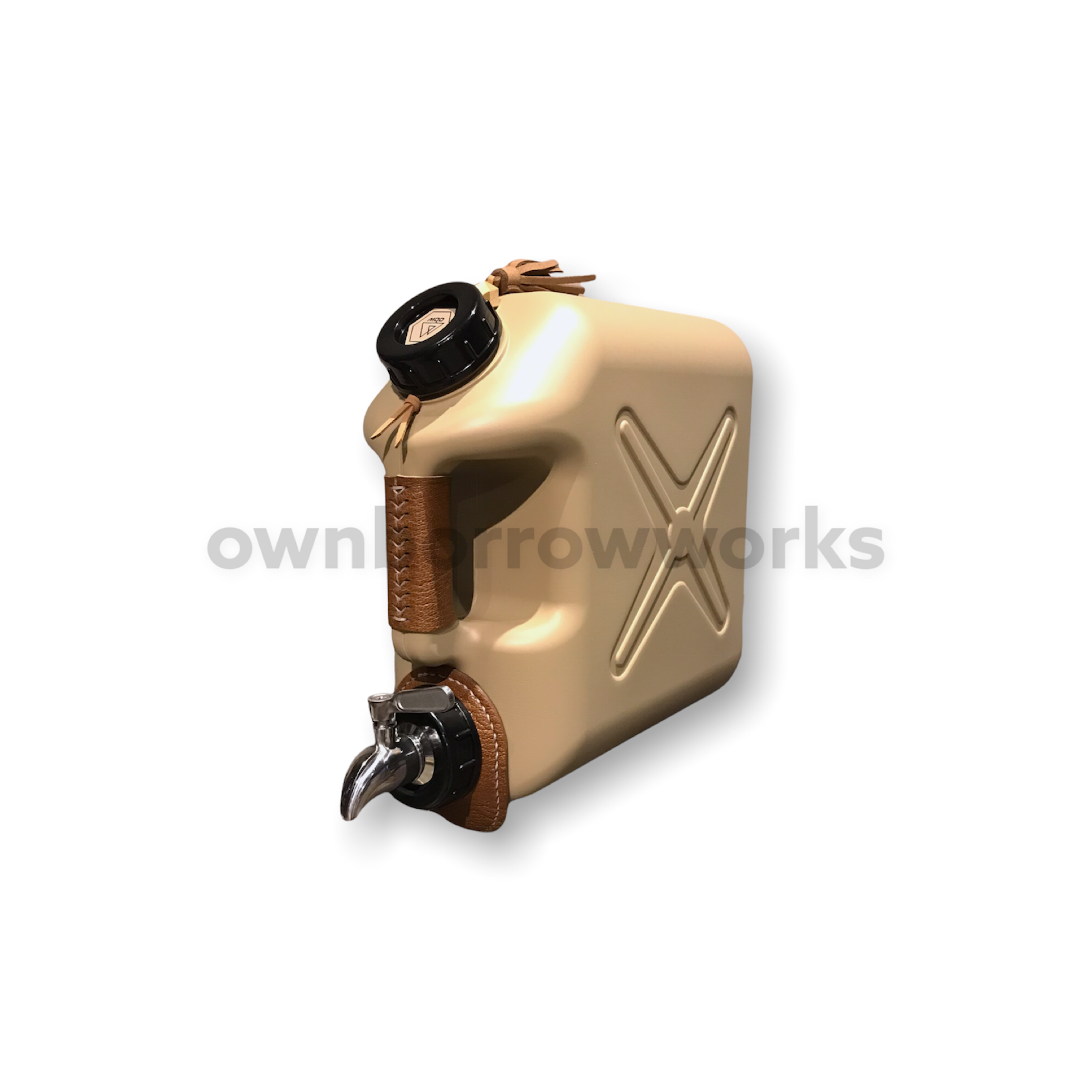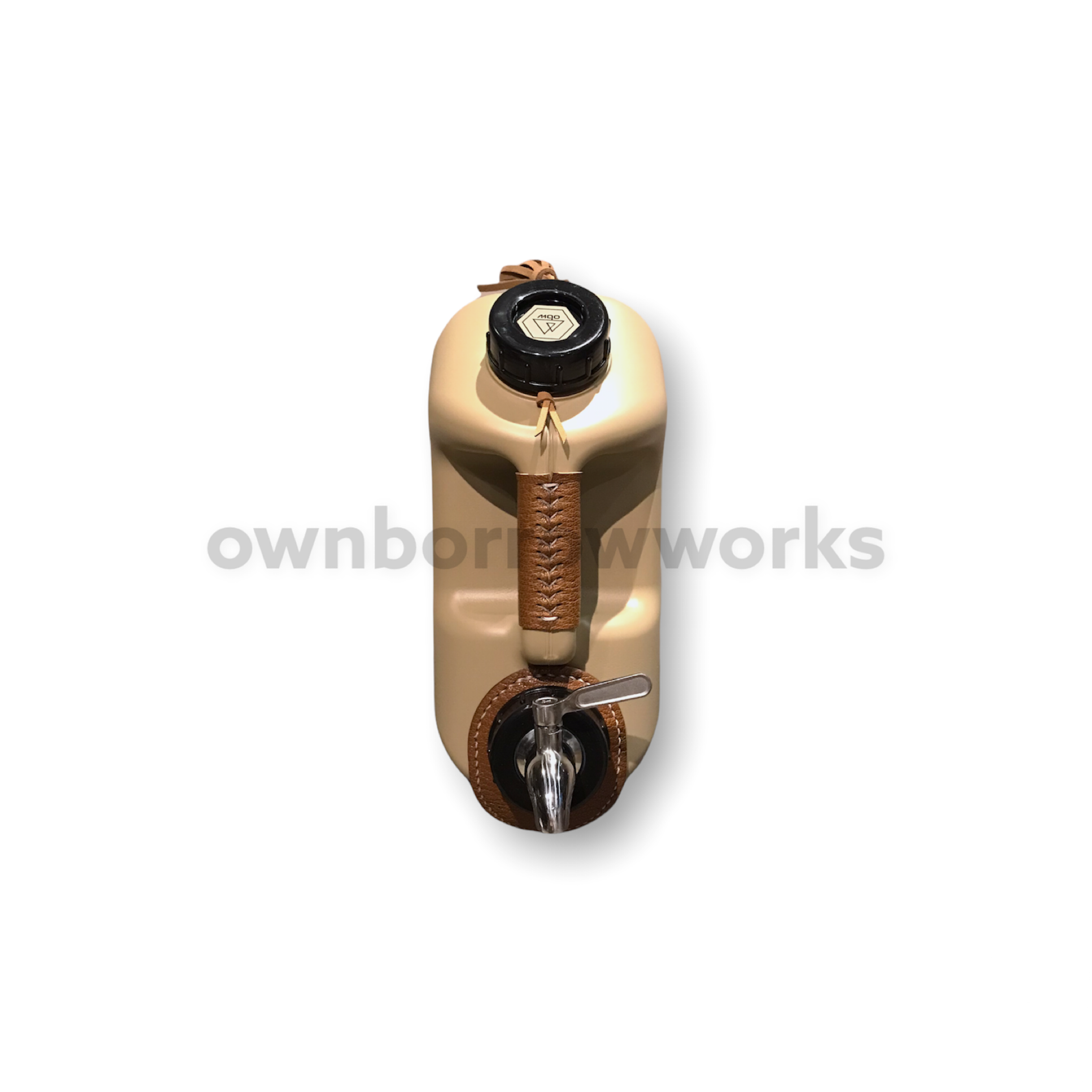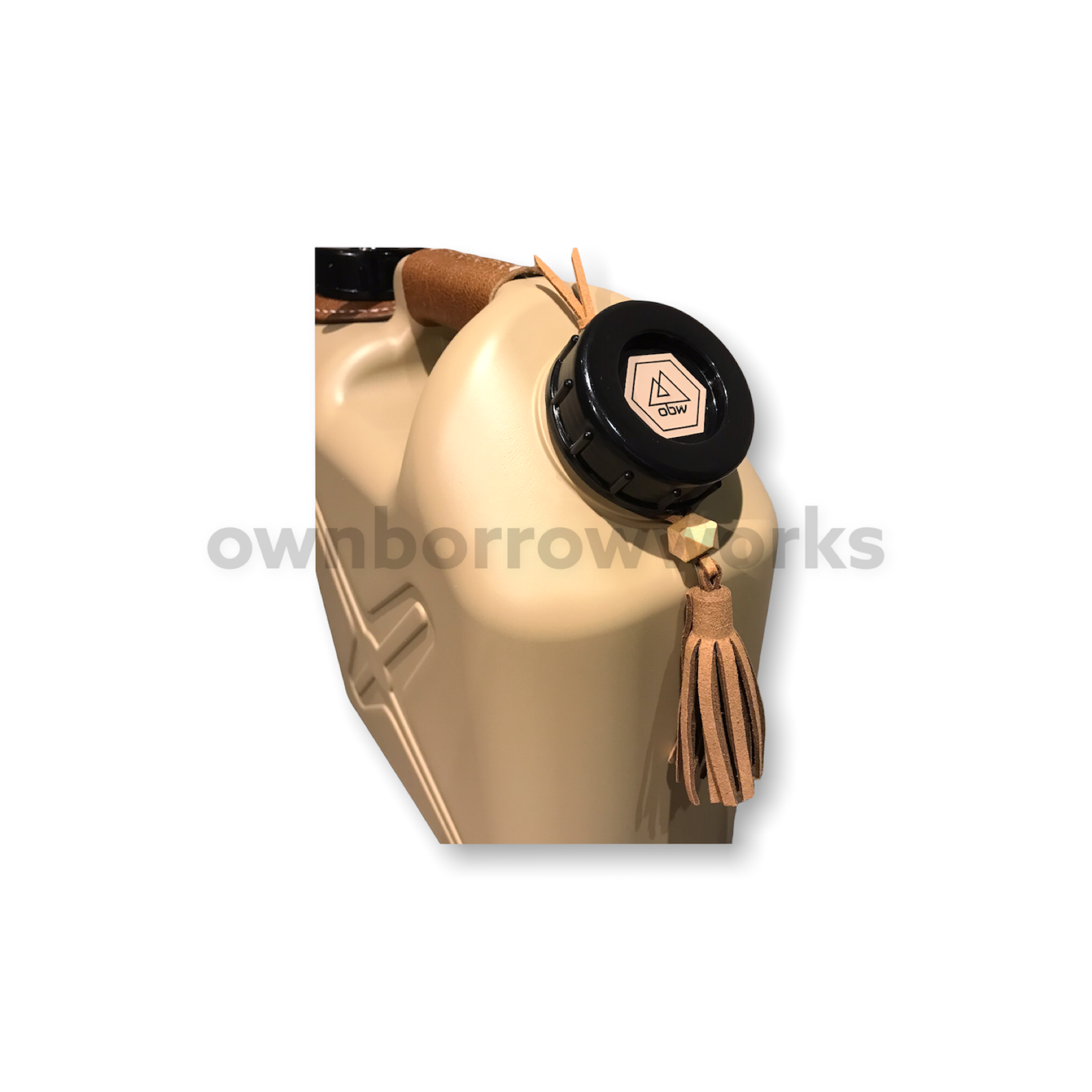 両手が使えるようサーバーコックを取り付け、アクセントにレザーやタッセルで飾り付けしてあり、他とは一味違ったギアとしてキャンプサイトの雰囲気もグッと良くなります。