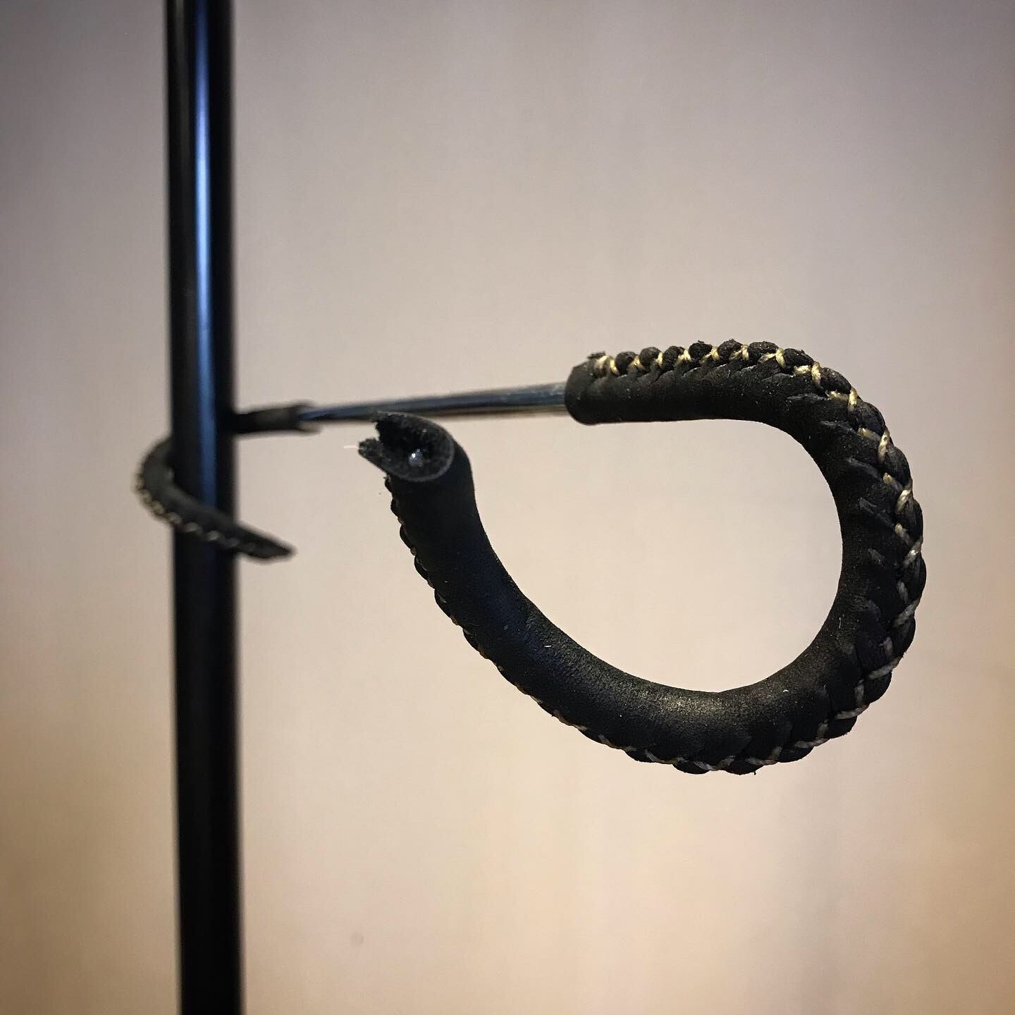 スチール製のハンガーにブラックのスエードを巻いてベージュのステッチで縫ってあります。