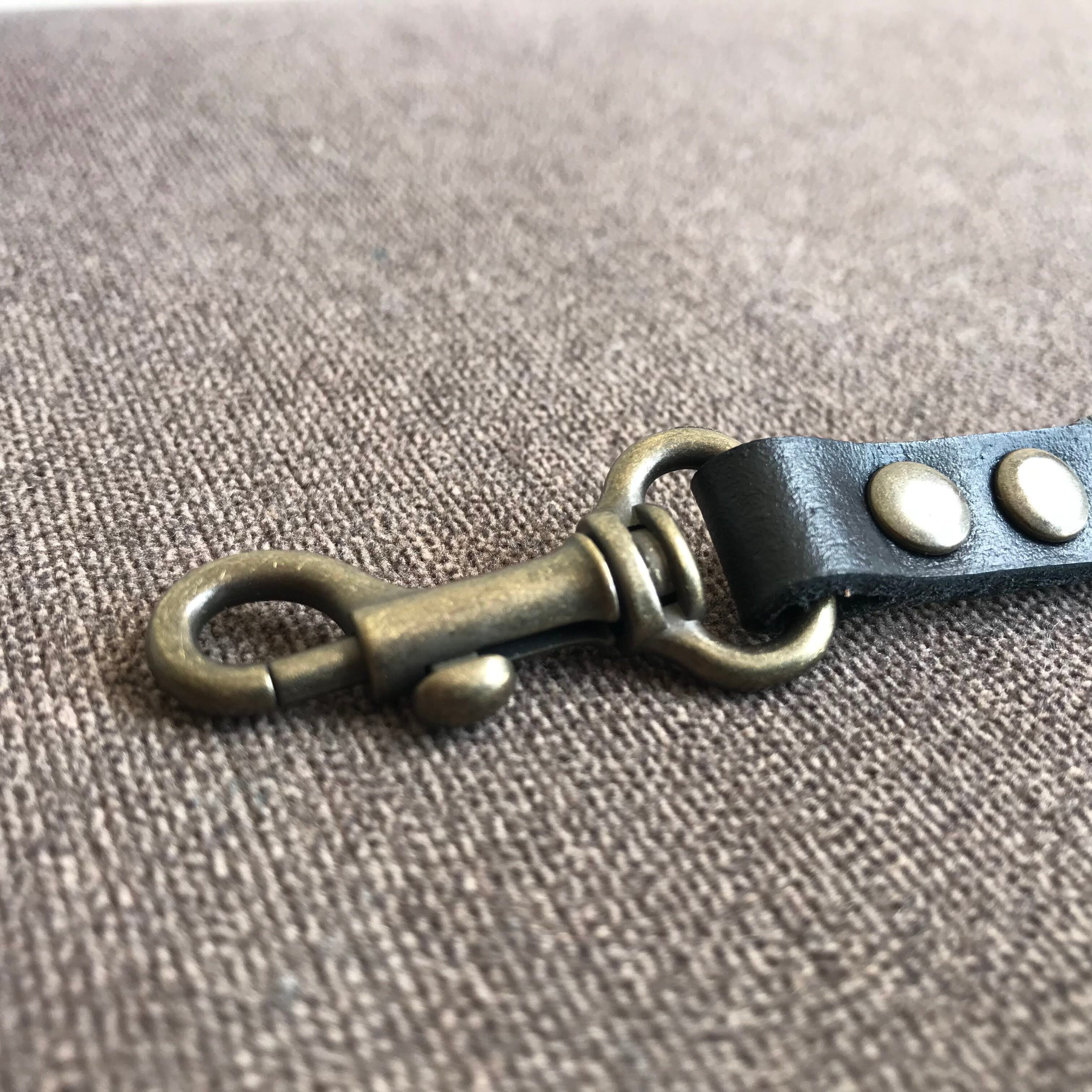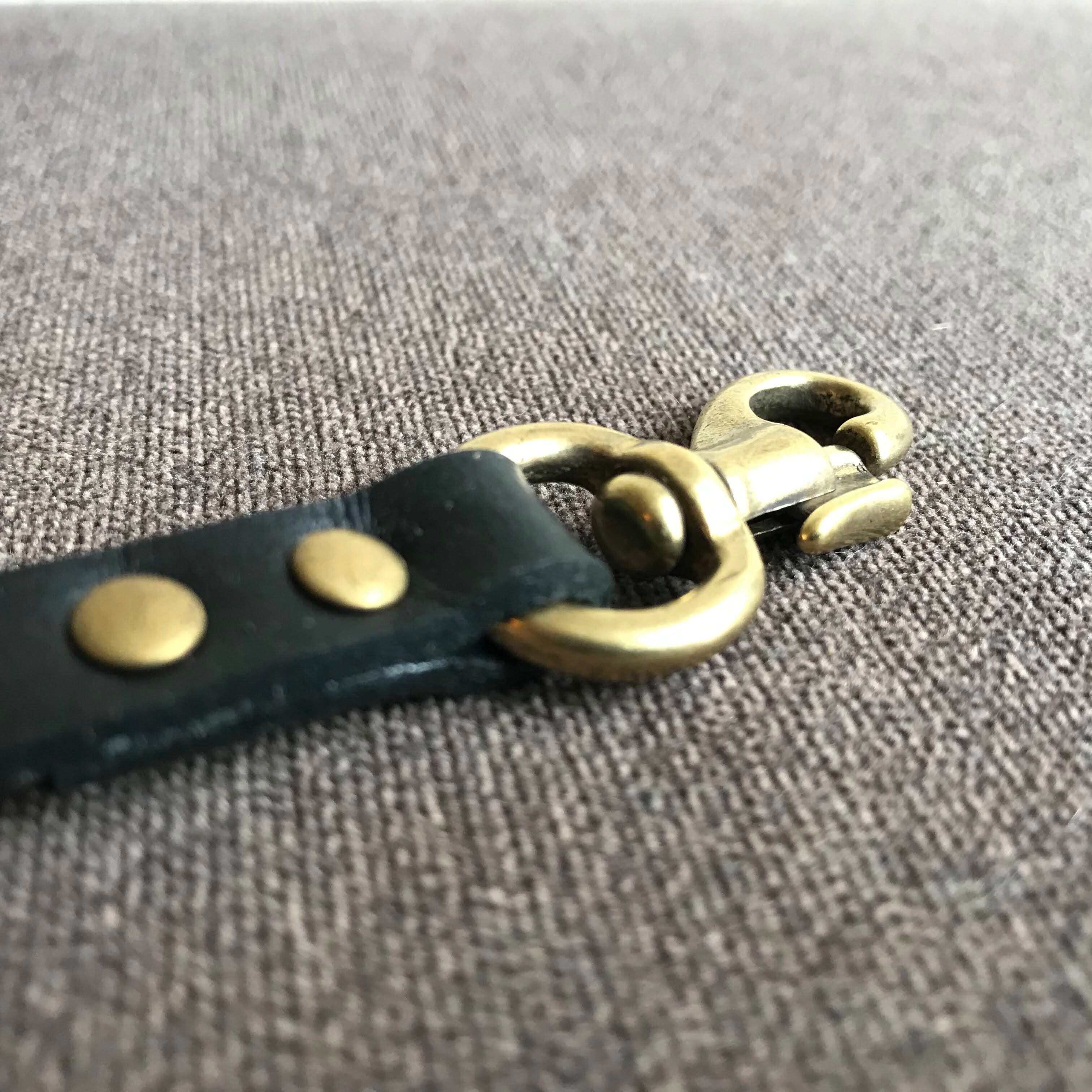 ブラックのレザーにワンポイントの装飾金具を使用したシンプルなレザーリードです。