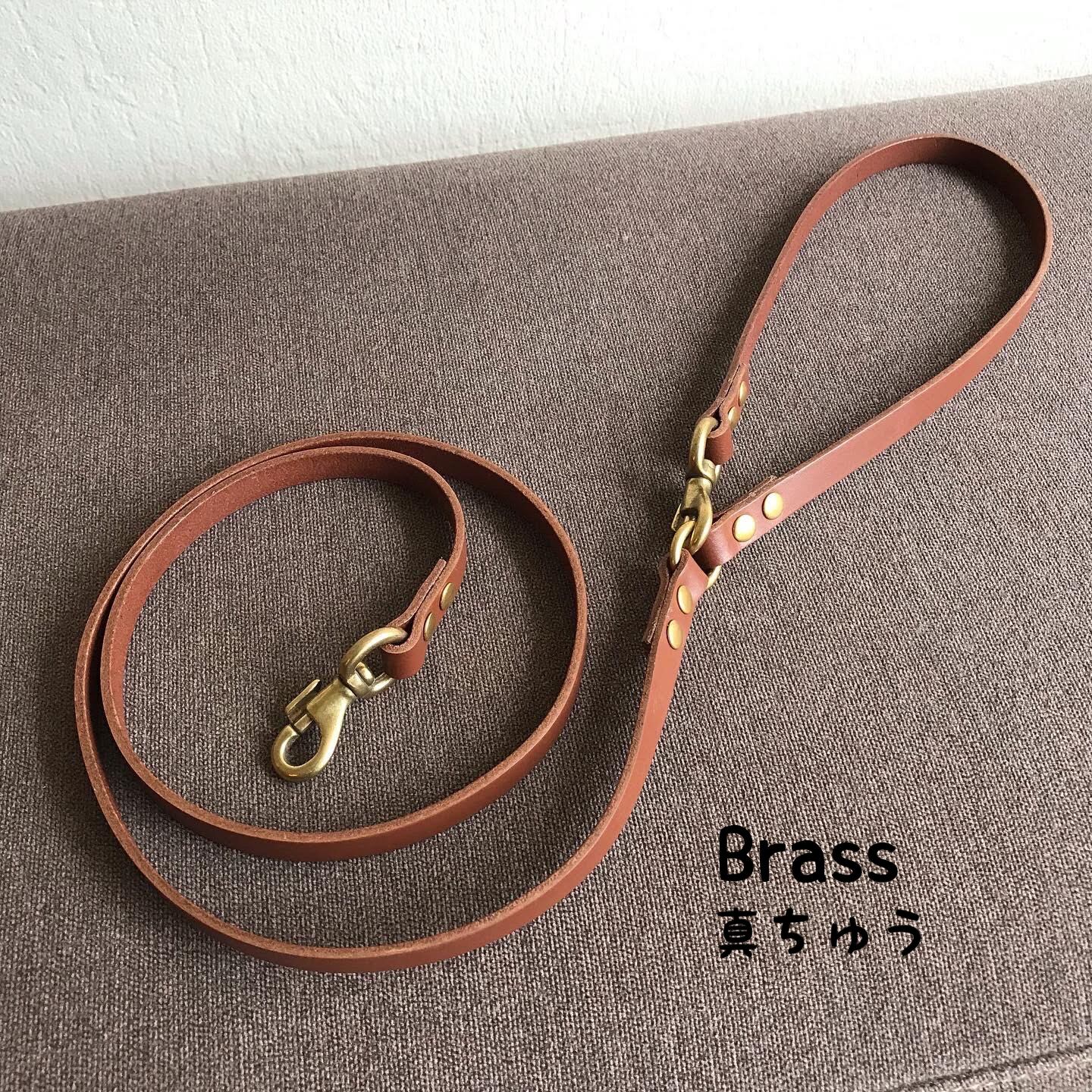 ブラウンのレザーにワンポイントの装飾金具を使用したシンプルなレザーリードです。